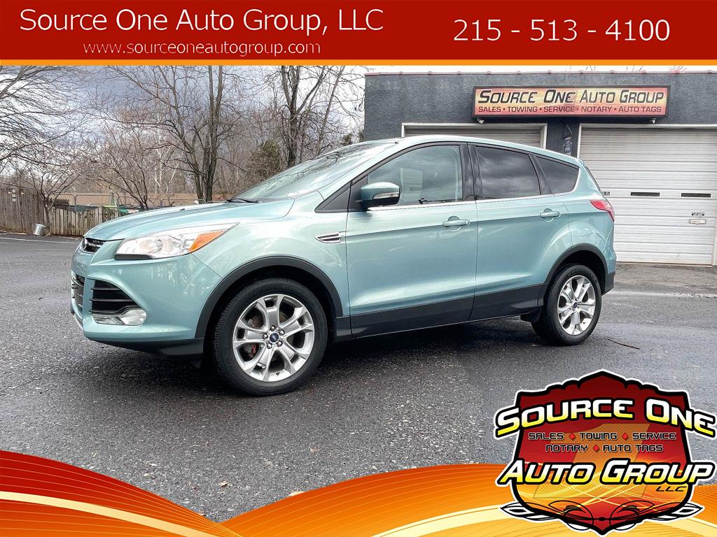 Wow, this 2013 Ford Escape SEL FWD SUV is in great condition inside & out, with only 58,955 miles! Sharp color combination! Nicely optioned w/safety & comfort features! Excellent MPG! New front and rear brakes! Just serviced & inspected! Clean CARFAX! Upgradable warranty included! Call 215-513-4100 or visit www.sourceoneautogroup.com today. Addt'l. Info.: 1.6L GTDI EcoBoost engine, 6-speed SelectShift automatic, FWD, 4-wheel ABS & disc brakes, AdvanceTrac w/RSC, TPMS, automatic halogen headlamps, fog lamps, DTRL, dual front, side & side curtain airbags, driver knee bag, automatic climate control, rear defrost/washer/wiper, tilt/telescoping steering wheel w/controls, interval wipers, cruise control, power driver's seat, driver memory, manual adjustable passenger seat, heated front seats, folding rear seat, 1-touch power windows, power heated exterior mirrors, folding side mirrors, power locks, keyless entry (1 FOB), keypad entry, touchscreen AM/FM/XM radio w/Microsoft Sync, AUX & USB inputs, universal garage door opener, Bluetooth phone, alloy wheels, space-saver spare, WeatherTech floor mats, factory manuals, frosted glass metallic exterior, stone (light tan) leather interior.